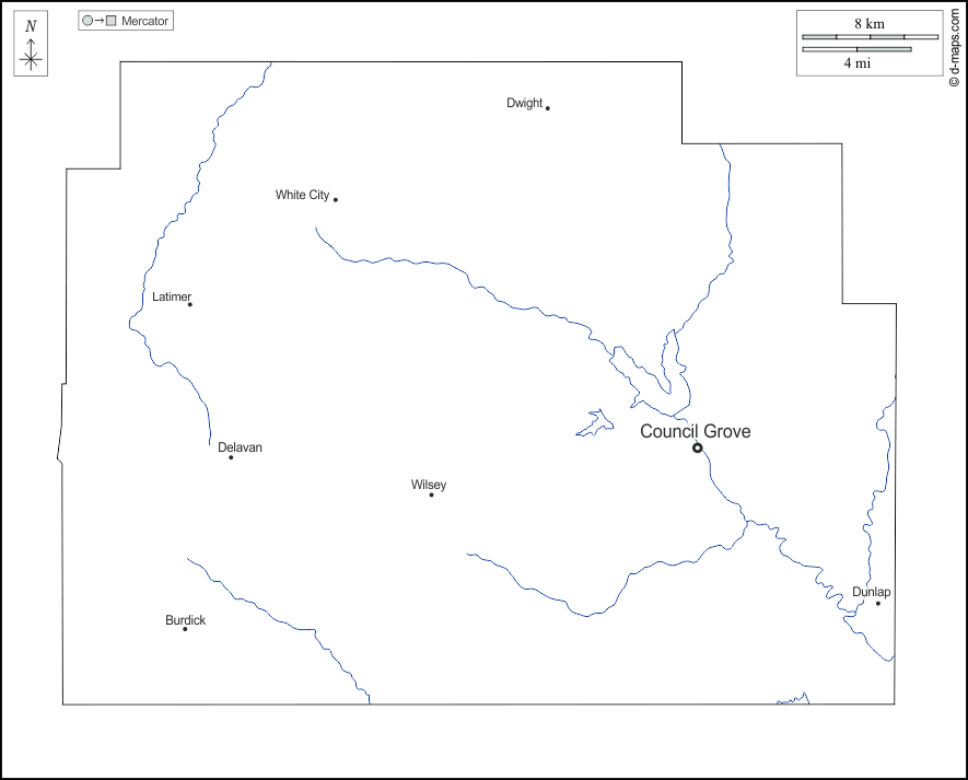 d-maps > संयुक्त राज्य > कैनसस > मॉरिस > बाह्यरेखा, जल-सर्वेक्षण, मुख्य शहरों, नाम, सफेद