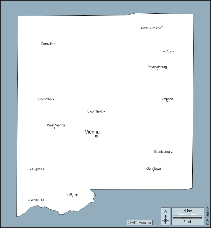 Belknap - Bloomfield - Buncombe - Cypress - Ganntown - Goreville - Grantsburg - New Burnside - Ozark - Reynoldsburg - Simpson - Vienna - West Vienna - White Hill