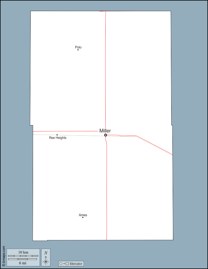 d-maps > संयुक्त राज्य > साउथ डकोटा > हाथ > बाह्यरेखा, मुख्य शहरों, सड़कों, नाम