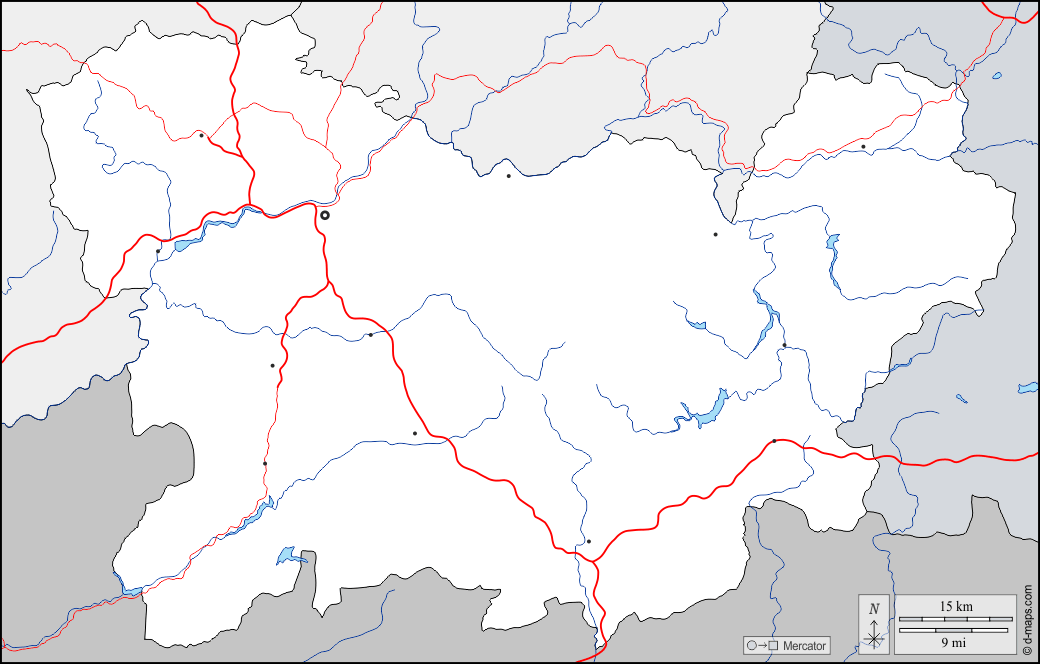 d-maps > यूरोप > स्पेन > हमारा > सीमाओं, जल-सर्वेक्षण, मुख्य शहरों, सड़कों