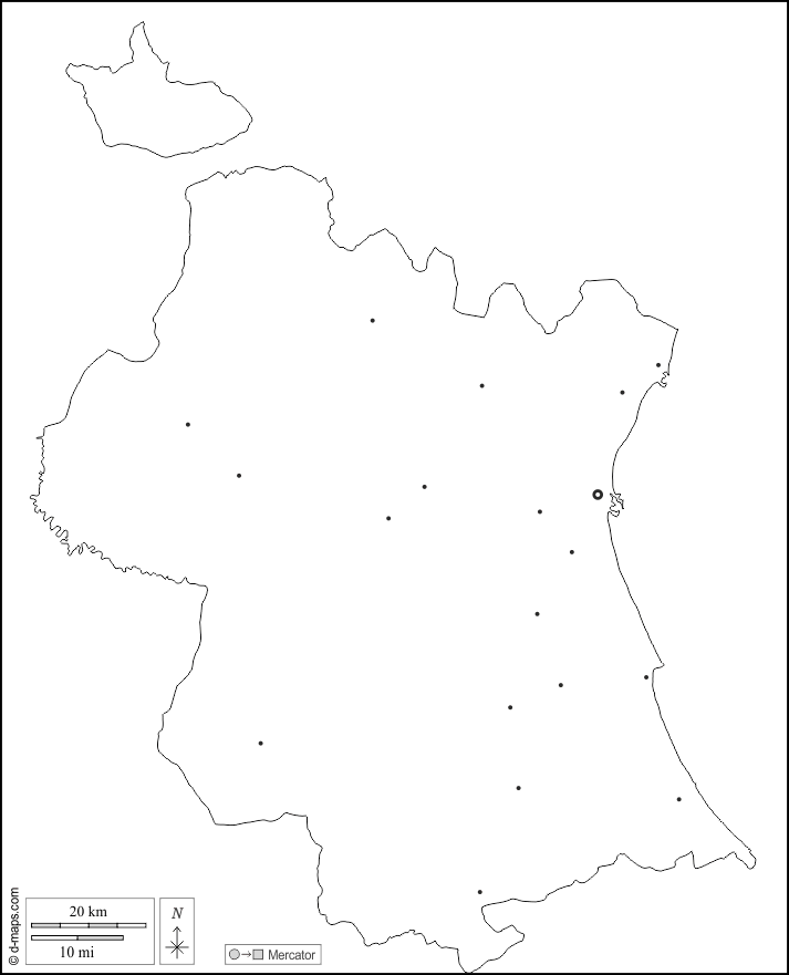 d-maps > यूरोप > स्पेन > वालेंसिया > बाह्यरेखा, मुख्य शहरों, सफेद