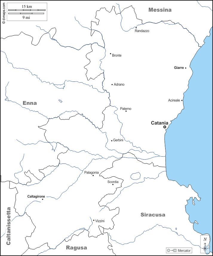 d-maps > यूरोप > इटली > केटानिया > सीमाओं, जल-सर्वेक्षण, मुख्य शहरों, नाम, सफेद
