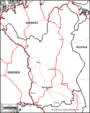 d-maps > यूरोप > फ़िनलैंड > लैपलैंड > बाह्यरेखा, जल-सर्वेक्षण, सड़कों, सफेद