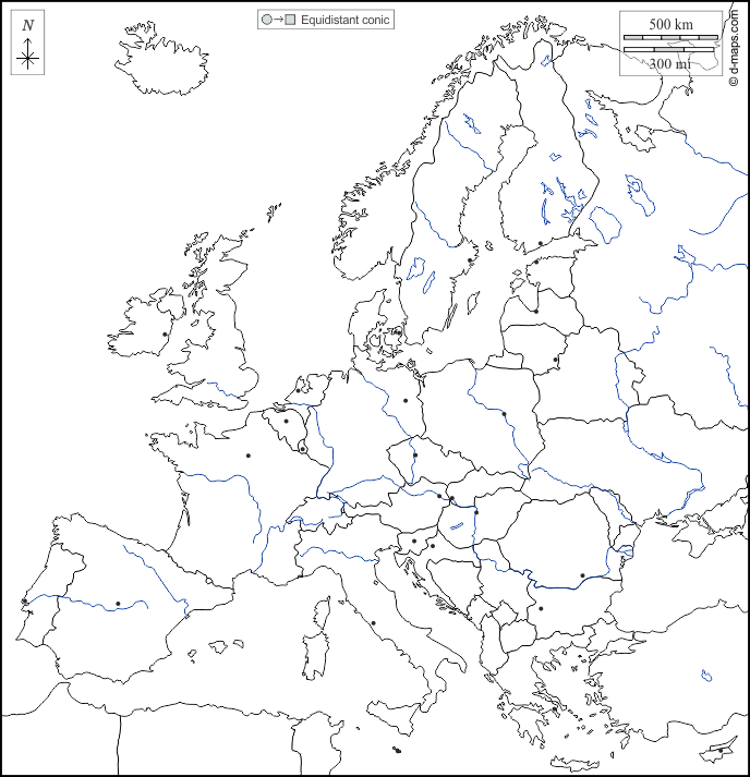d-maps > यूरोप > यूरोपीय संघ > तटों, सीमाओं, जल-सर्वेक्षण, राज्यों, राजधानियों, सफेद