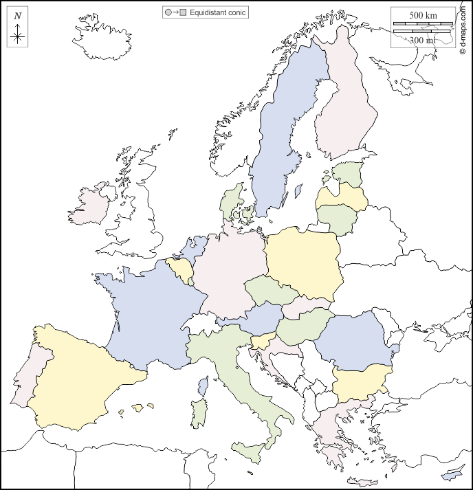 d-maps > यूरोप > यूरोपीय संघ > सीमाओं, राज्यों, रंग, सफेद