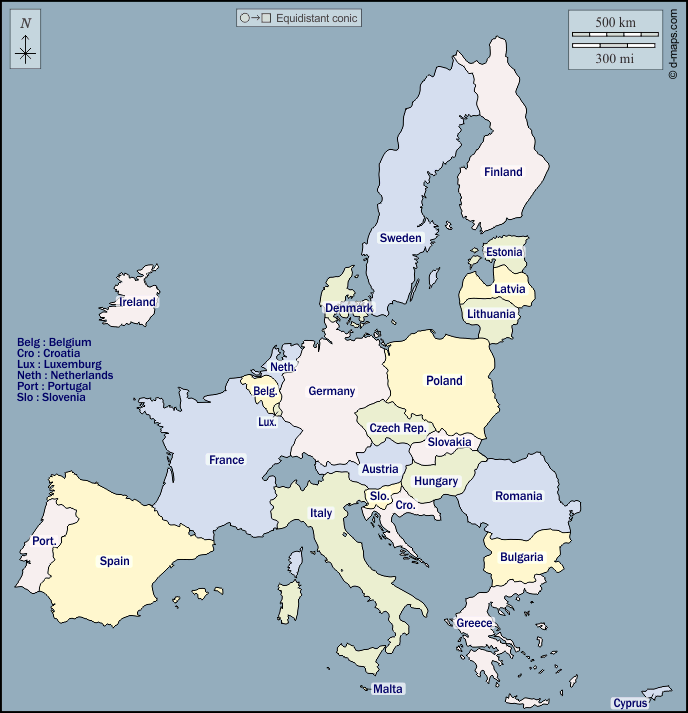 d-maps > यूरोप > यूरोपीय संघ > राज्यों, नाम, रंग