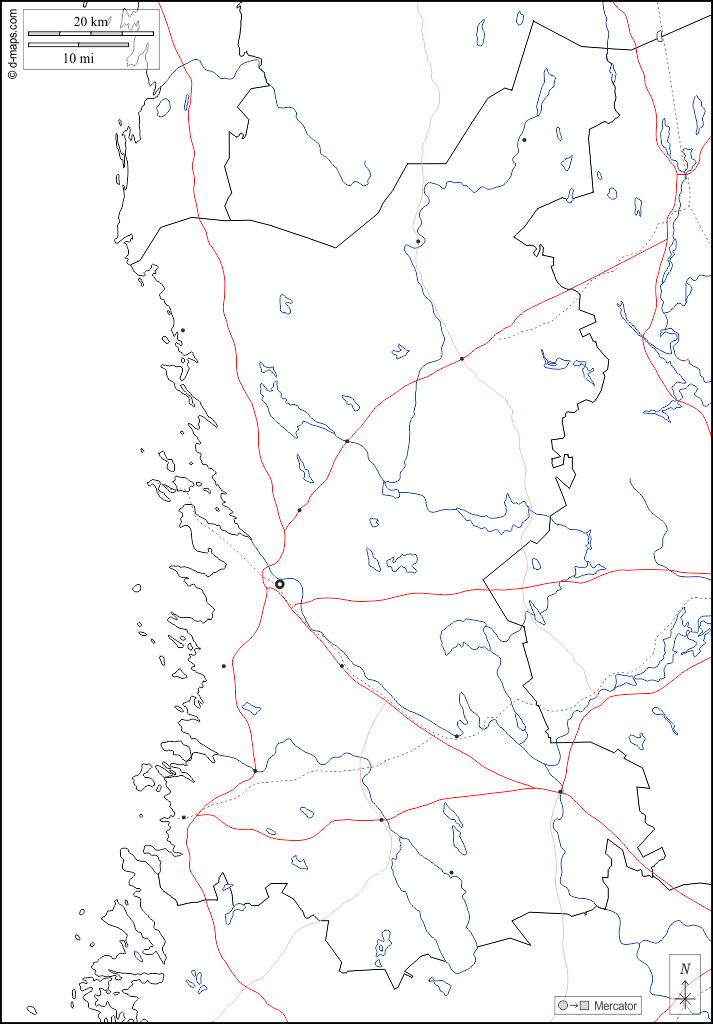 d-maps > यूरोप > फ़िनलैंड > सतकुंता > सीमाओं, जल-सर्वेक्षण, मुख्य शहरों, सड़कों, सफेद