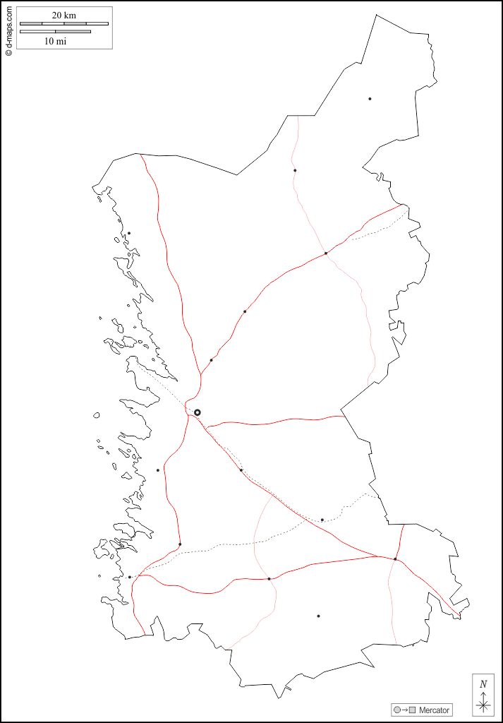d-maps > यूरोप > फ़िनलैंड > सतकुंता > बाह्यरेखा, मुख्य शहरों, सड़कों, सफेद