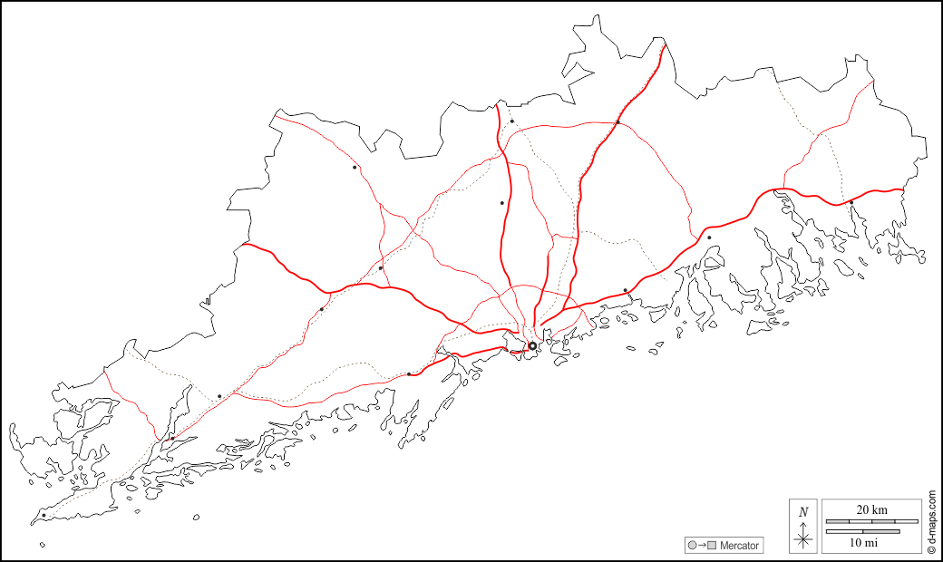 d-maps > यूरोप > फ़िनलैंड > उशिमा > बाह्यरेखा, मुख्य शहरों, सड़कों, सफेद