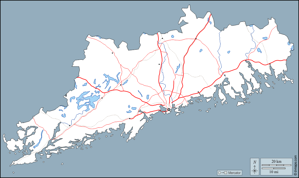 d-maps > यूरोप > फ़िनलैंड > उशिमा > बाह्यरेखा, जल-सर्वेक्षण, मुख्य शहरों, सड़कों