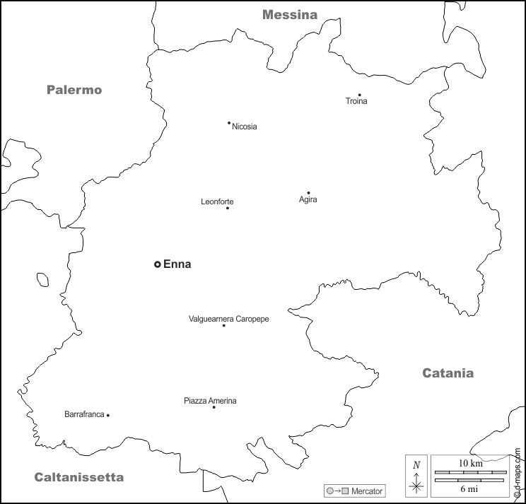 d-maps > यूरोप > इटली > एनना > सीमाओं, मुख्य शहरों, नाम, सफेद