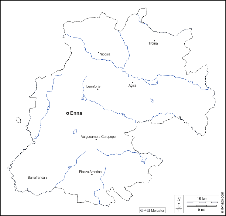 d-maps > यूरोप > इटली > एनना > बाह्यरेखा, जल-सर्वेक्षण, मुख्य शहरों, नाम, सफेद