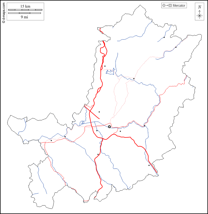 d-maps > यूरोप > इटली > फ्लोरेंस > बाह्यरेखा, जल-सर्वेक्षण, मुख्य शहरों, सड़कों, सफेद
