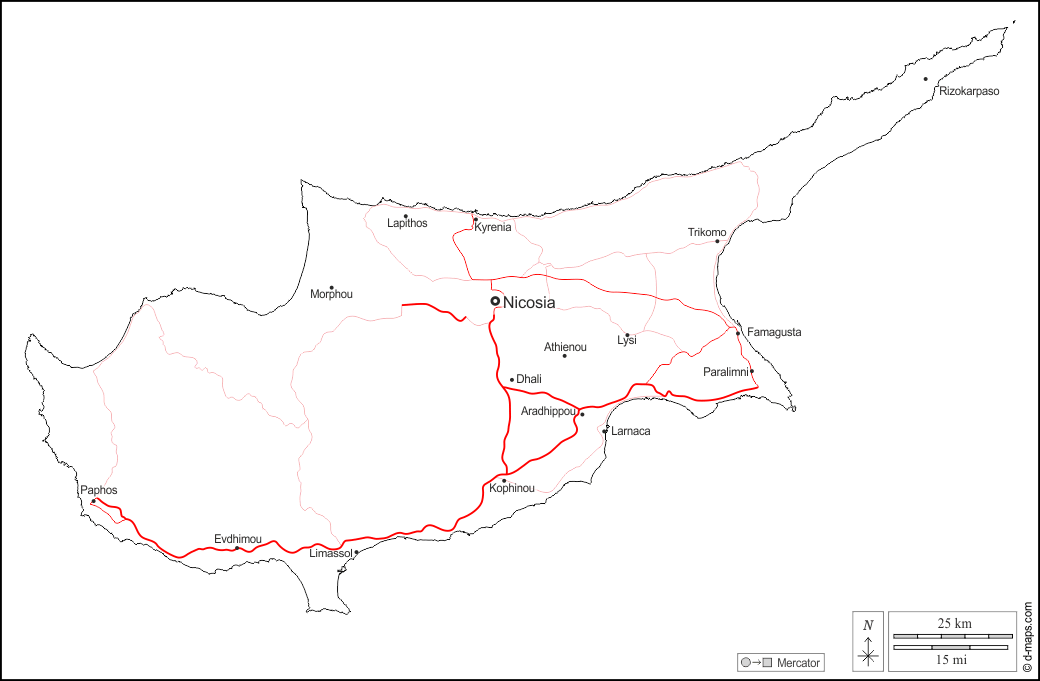 d-maps > यूरोप > साइप्रस > मुख्य शहरों, सड़कों, नाम, सफेद