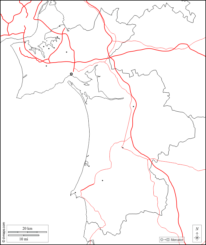 d-maps > यूरोप > पुर्तगाल > सेतुबल > सीमाओं, मुख्य शहरों, सड़कों, सफेद