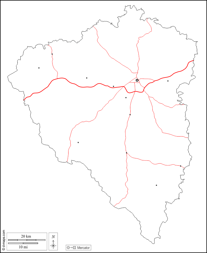 d-maps > यूरोप > चेक गणराज्य > पीएलज़े > बाह्यरेखा, मुख्य शहरों, सड़कों, सफेद