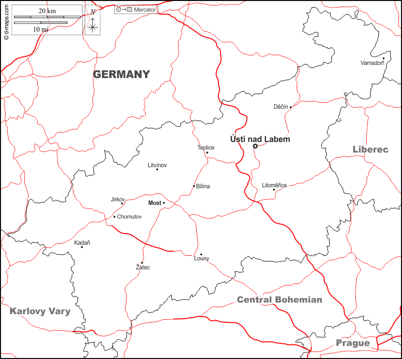 d-maps > यूरोप > चेक गणराज्य > उस्ती नाद लाबेम > सीमाओं, मुख्य शहरों, सड़कों, नाम, सफेद