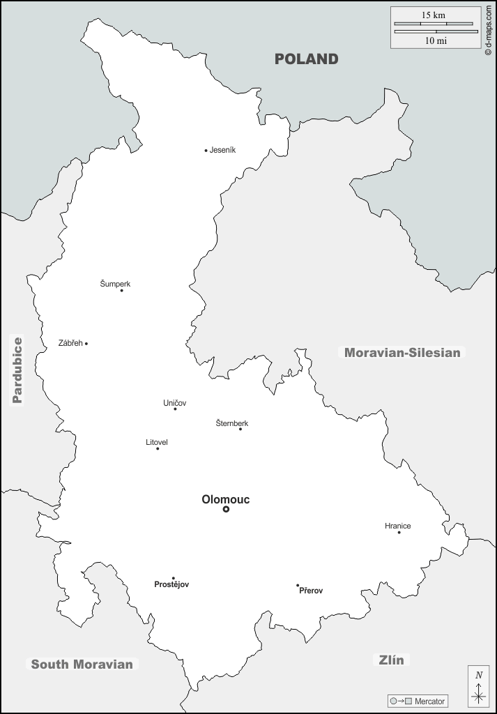 d-maps > यूरोप > चेक गणराज्य > ओलोमोक > सीमाओं, मुख्य शहरों, नाम