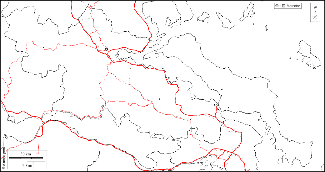 d-maps > यूरोप > यूनान > मध्य ग्रीस > सीमाओं, मुख्य शहरों, सड़कों, सफेद
