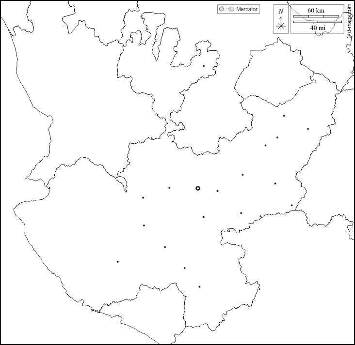 d-maps > महाअमेरिका > मेक्सिको > जलिस्को > सीमाओं, मुख्य शहरों, सफेद