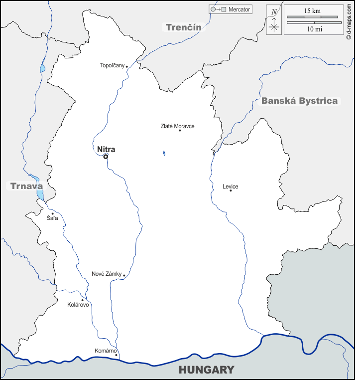 d-maps > यूरोप > स्लोवाकिया > नितरा > सीमाओं, जल-सर्वेक्षण, मुख्य शहरों, नाम