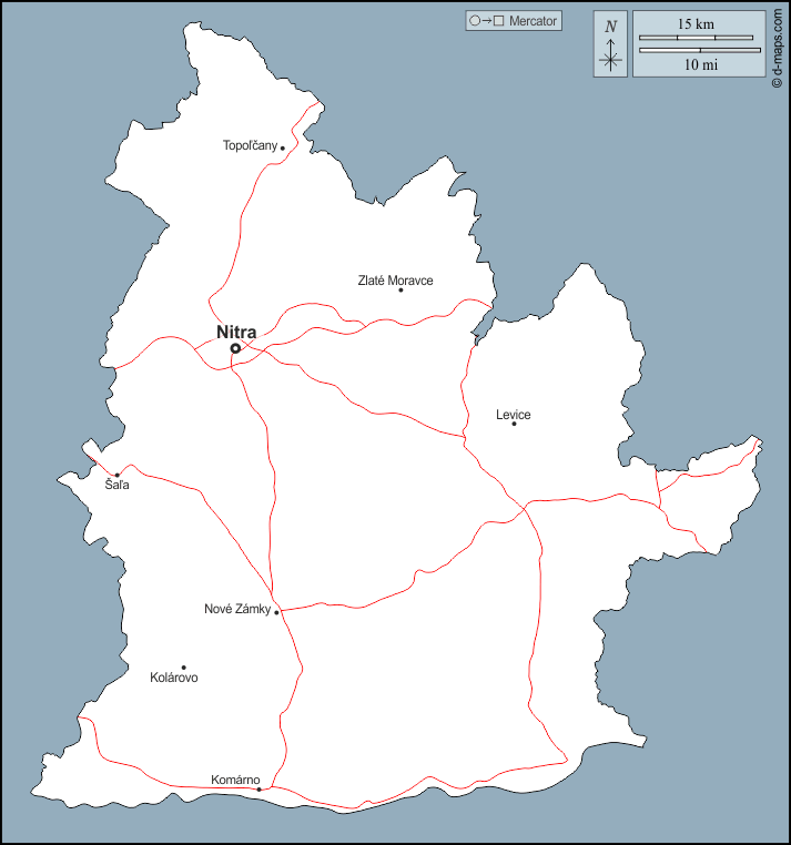 d-maps > यूरोप > स्लोवाकिया > नितरा > बाह्यरेखा, मुख्य शहरों, सड़कों, नाम