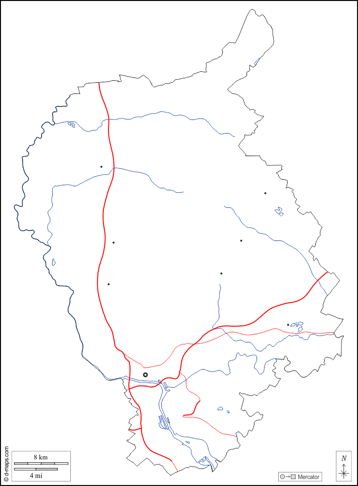 d-maps > यूरोप > स्लोवाकिया > ब्रेटीस्लावा > बाह्यरेखा, जल-सर्वेक्षण, मुख्य शहरों, सड़कों, सफेद