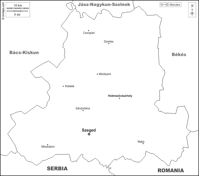 d-maps > यूरोप > हंगरी > काउंटी > सीमाओं, मुख्य शहरों, नाम, सफेद