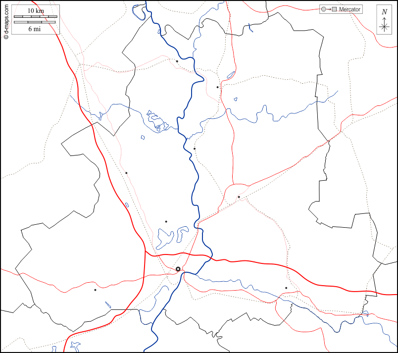 d-maps > यूरोप > हंगरी > काउंटी > सीमाओं, जल-सर्वेक्षण, मुख्य शहरों, सड़कों, सफेद