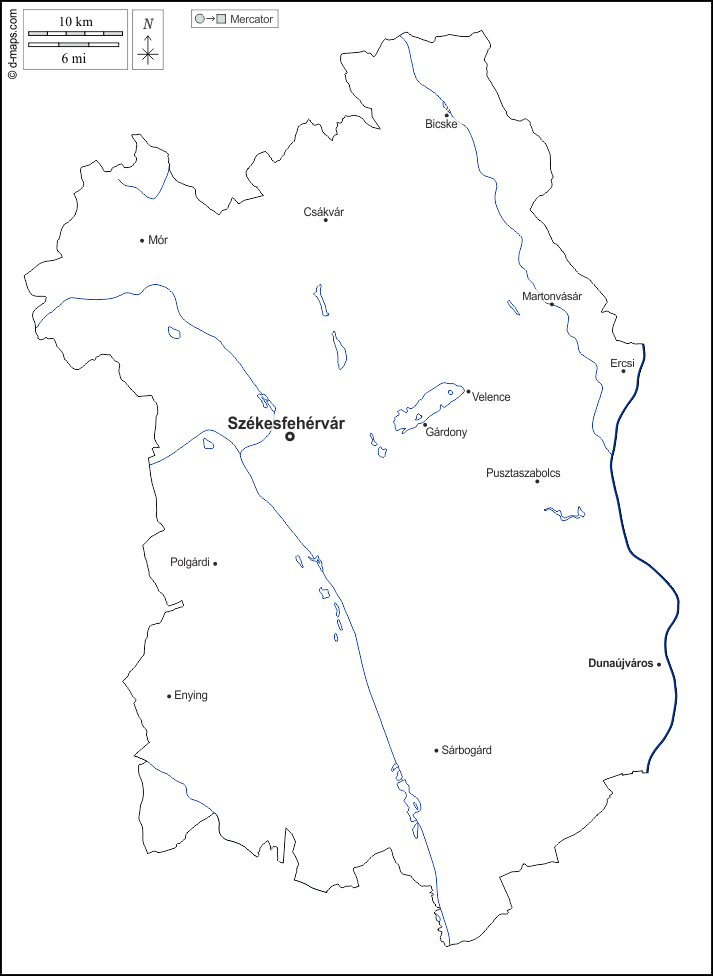 d-maps > यूरोप > हंगरी > फेजर > बाह्यरेखा, जल-सर्वेक्षण, मुख्य शहरों, नाम, सफेद