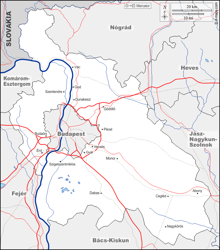 d-maps > यूरोप > हंगरी > कीट > सीमाओं, जल-सर्वेक्षण, मुख्य शहरों, सड़कों, नाम