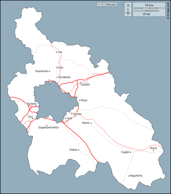 d-maps > यूरोप > हंगरी > कीट > बाह्यरेखा, मुख्य शहरों, सड़कों, नाम