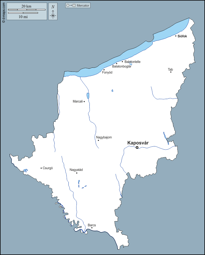 d-maps > यूरोप > हंगरी > सोमोगी > बाह्यरेखा, जल-सर्वेक्षण, मुख्य शहरों, नाम