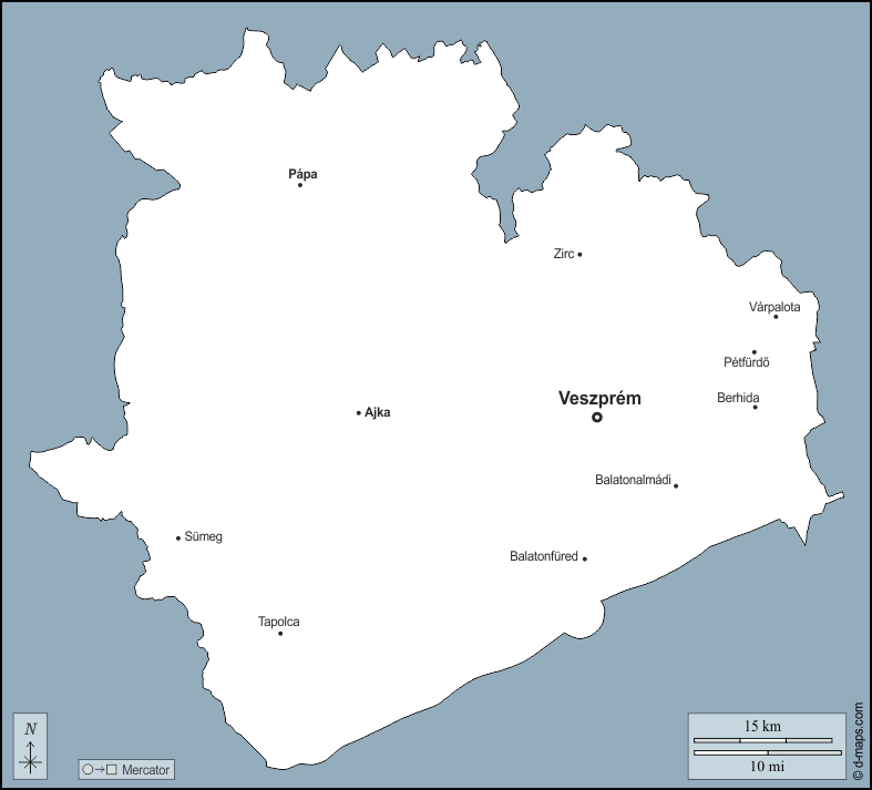 d-maps > यूरोप > हंगरी > वेज़प्रेम > बाह्यरेखा, मुख्य शहरों, नाम