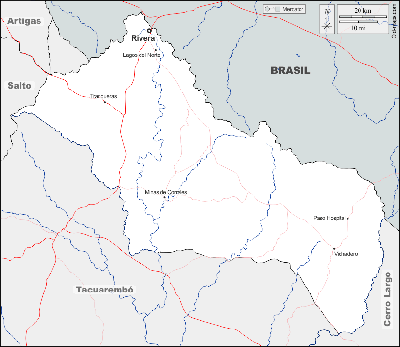d-maps > महाअमेरिका > उरुग्वे > रिवेरा > सीमाओं, जल-सर्वेक्षण, मुख्य शहरों, सड़कों, नाम