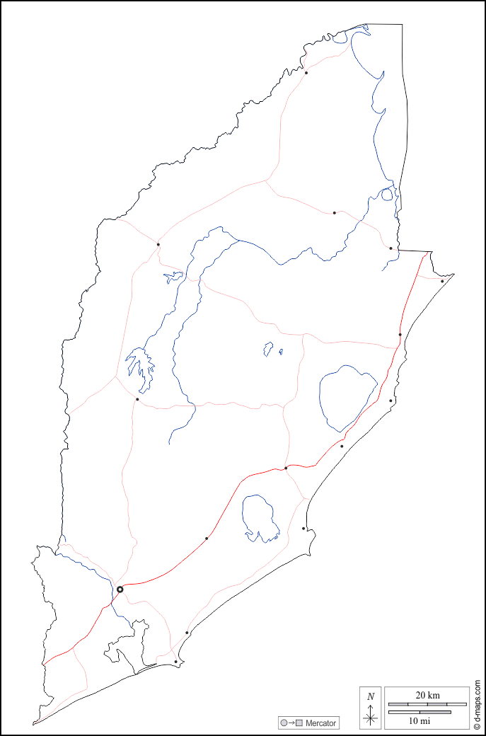 d-maps > महाअमेरिका > उरुग्वे > रॉक > बाह्यरेखा, जल-सर्वेक्षण, मुख्य शहरों, सड़कों, सफेद