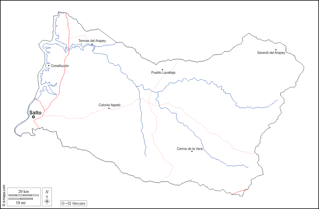 d-maps > महाअमेरिका > उरुग्वे > कूद > बाह्यरेखा, जल-सर्वेक्षण, मुख्य शहरों, सड़कों, नाम, सफेद