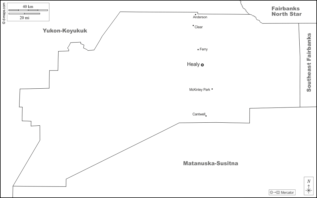 d-maps > संयुक्त राज्य > अलास्का > डेनाली > सीमाओं, मुख्य शहरों, नाम, सफेद