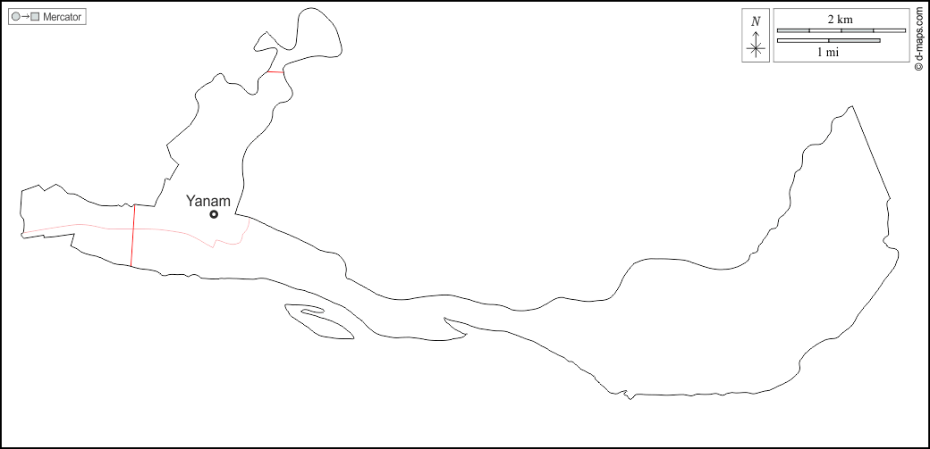 d-maps > एशिया > भारत > यानम > बाह्यरेखा, मुख्य शहरों, सड़कों, नाम, सफेद