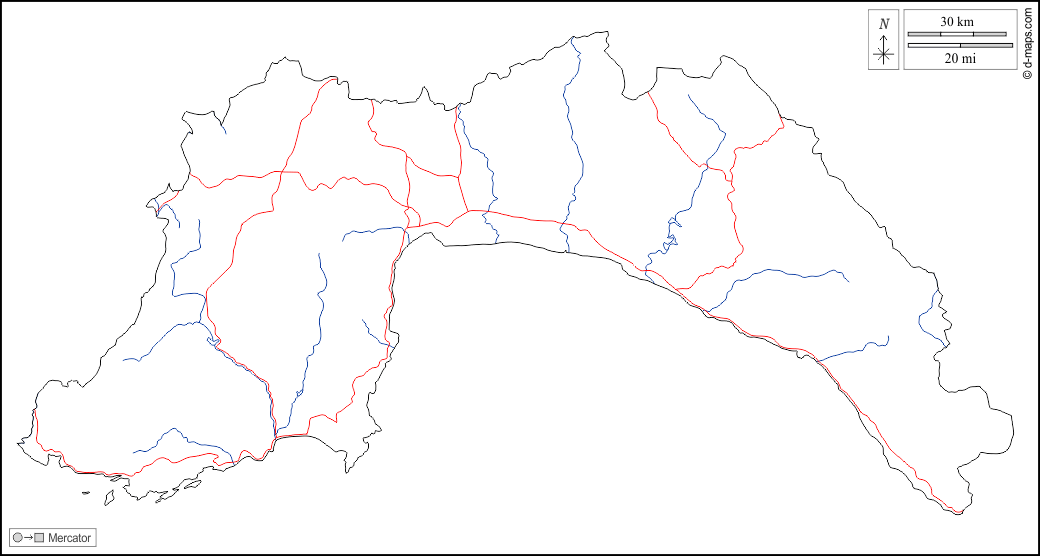 d-maps > एशिया > तुर्की > एंताल्या > बाह्यरेखा, जल-सर्वेक्षण, सड़कों, सफेद