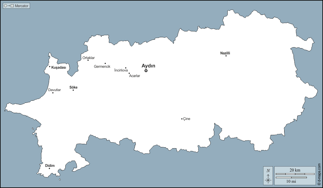 d-maps > एशिया > तुर्की > अयदीन > बाह्यरेखा, मुख्य शहरों, नाम