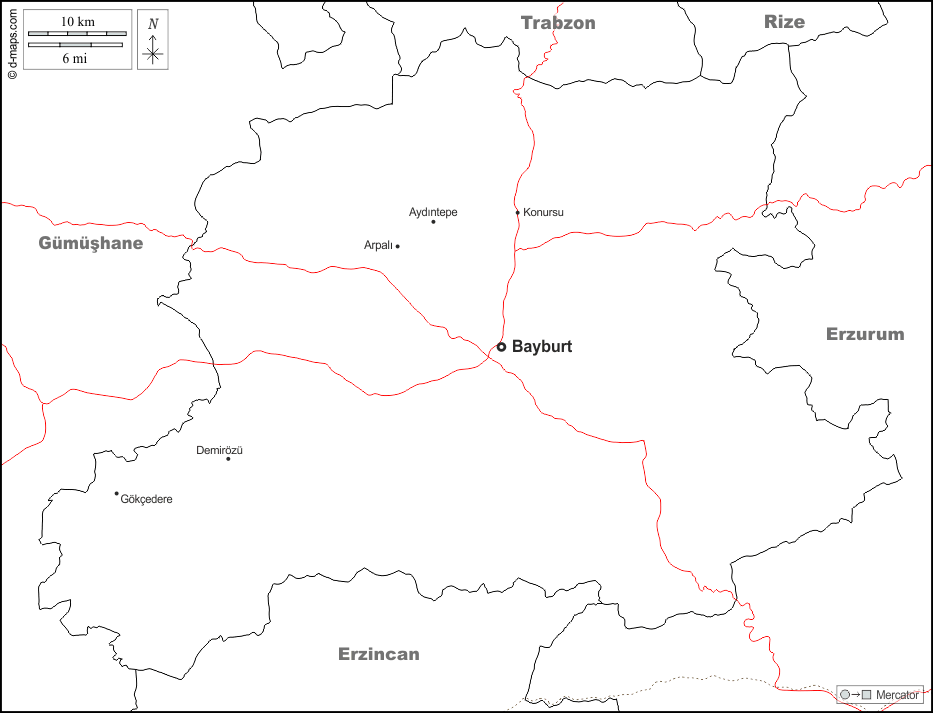 d-maps > एशिया > तुर्की > बेकर > सीमाओं, मुख्य शहरों, सड़कों, नाम, सफेद