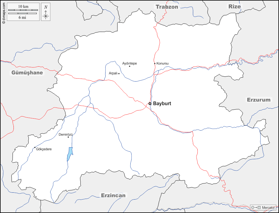 d-maps > एशिया > तुर्की > बेकर > सीमाओं, जल-सर्वेक्षण, मुख्य शहरों, सड़कों, नाम
