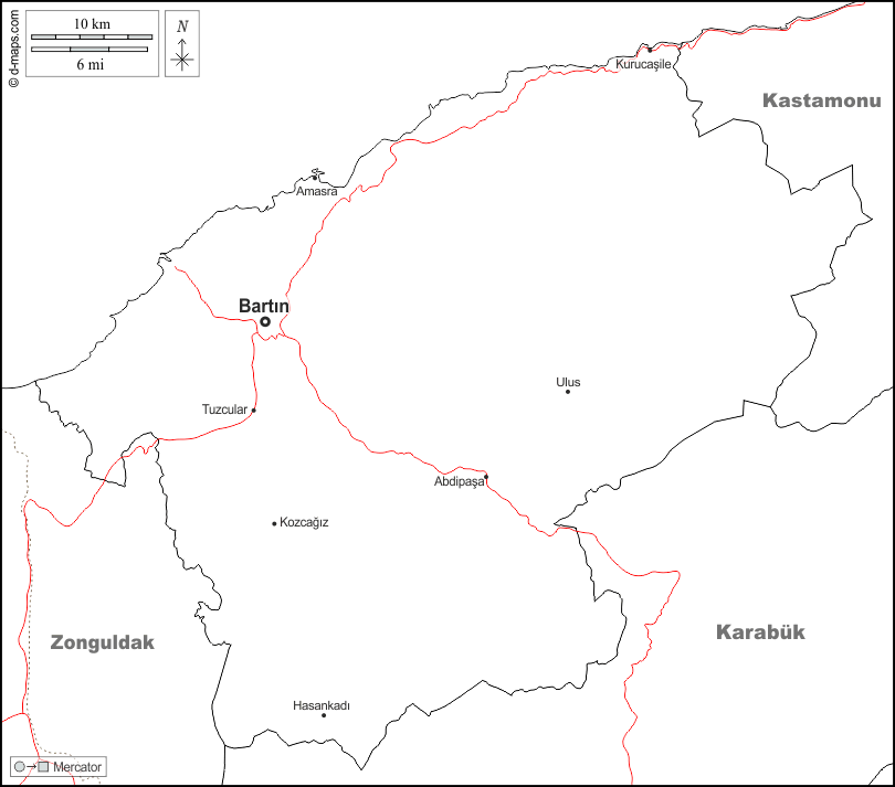 d-maps > एशिया > तुर्की > बारटिन > सीमाओं, मुख्य शहरों, सड़कों, नाम, सफेद