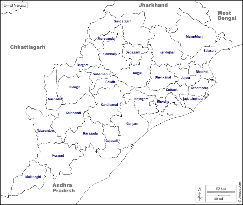 d-maps > एशिया > भारत > ओडिशा > सीमाओं, जिलों, नाम, सफेद