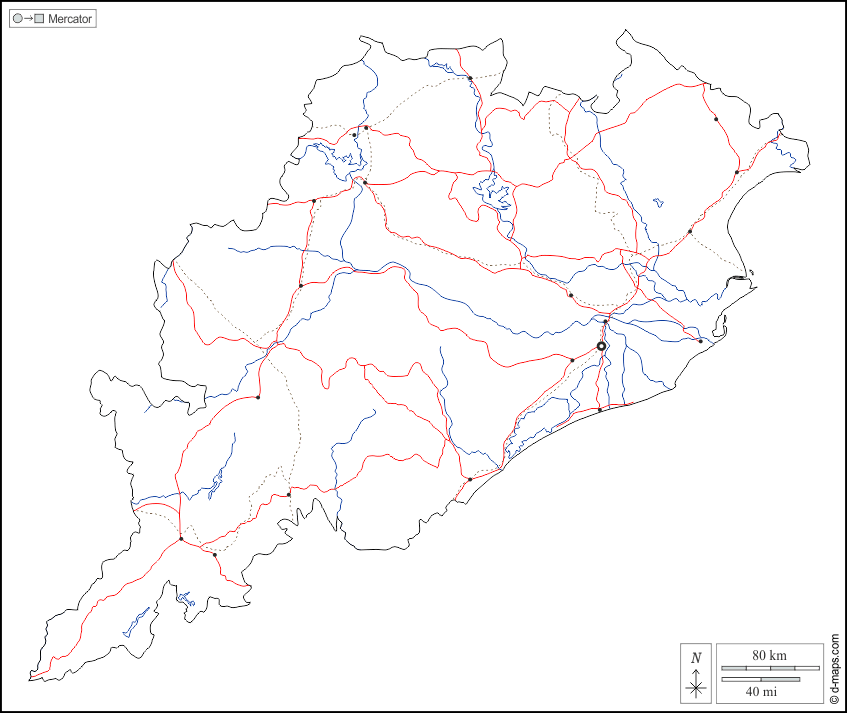 d-maps > एशिया > भारत > ओडिशा > बाह्यरेखा, जल-सर्वेक्षण, मुख्य शहरों, सड़कों, सफेद