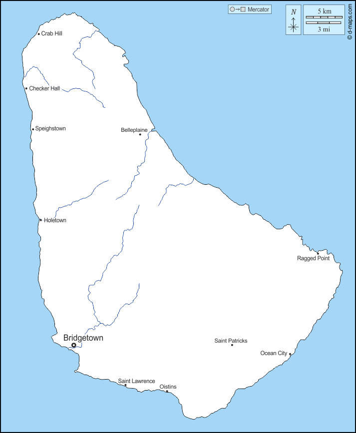 d-maps > महाअमेरिका > बारबाडोस > तटों, जल-सर्वेक्षण, मुख्य शहरों, नाम