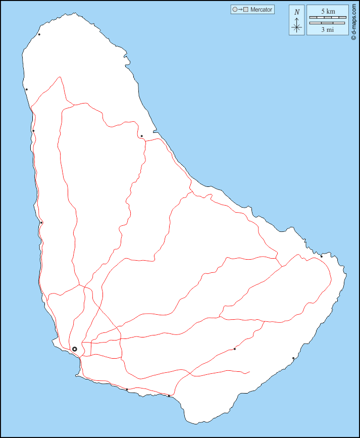 d-maps > महाअमेरिका > बारबाडोस > तटों, मुख्य शहरों, सड़कों
