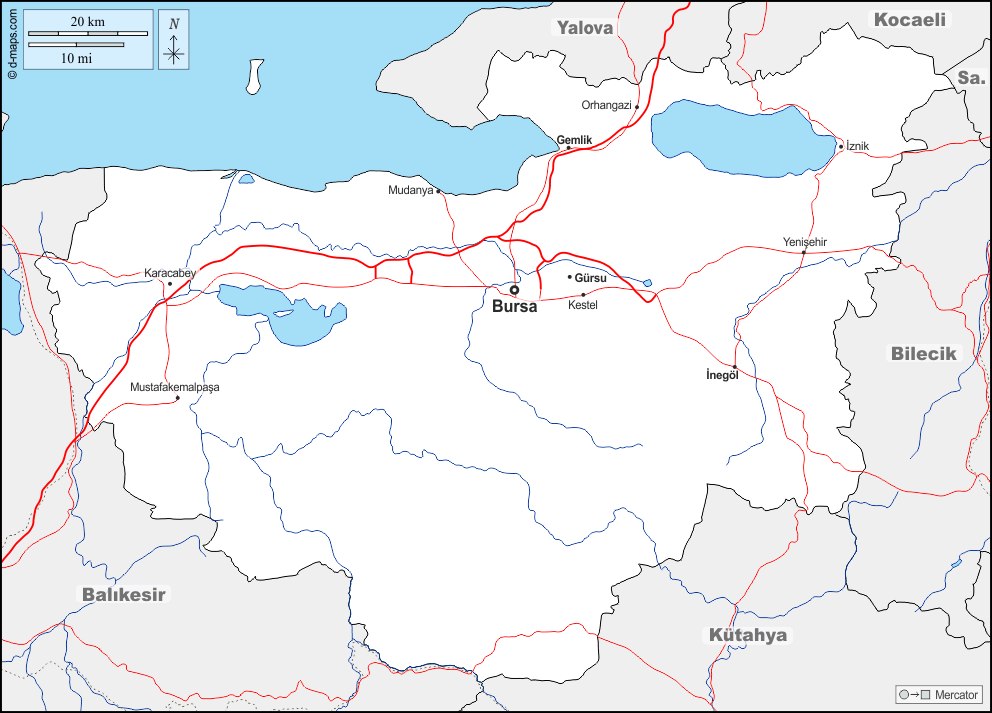 d-maps > एशिया > तुर्की > भंडार > सीमाओं, जल-सर्वेक्षण, मुख्य शहरों, सड़कों, नाम