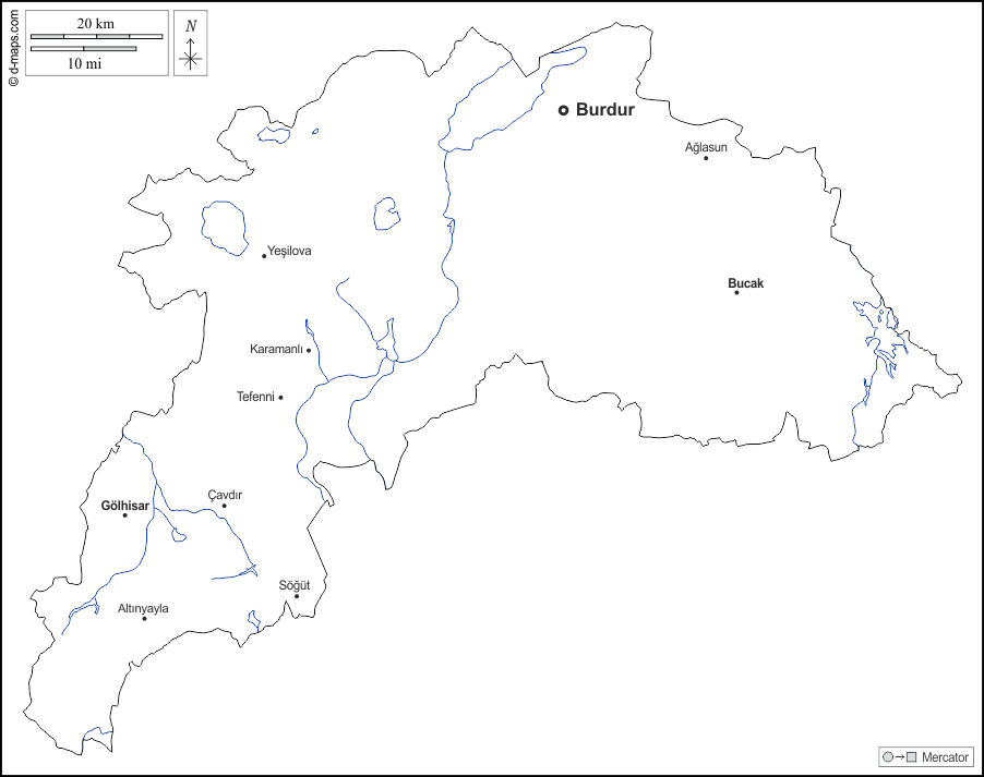 d-maps > एशिया > तुर्की > बुर्दूर > बाह्यरेखा, जल-सर्वेक्षण, मुख्य शहरों, नाम, सफेद